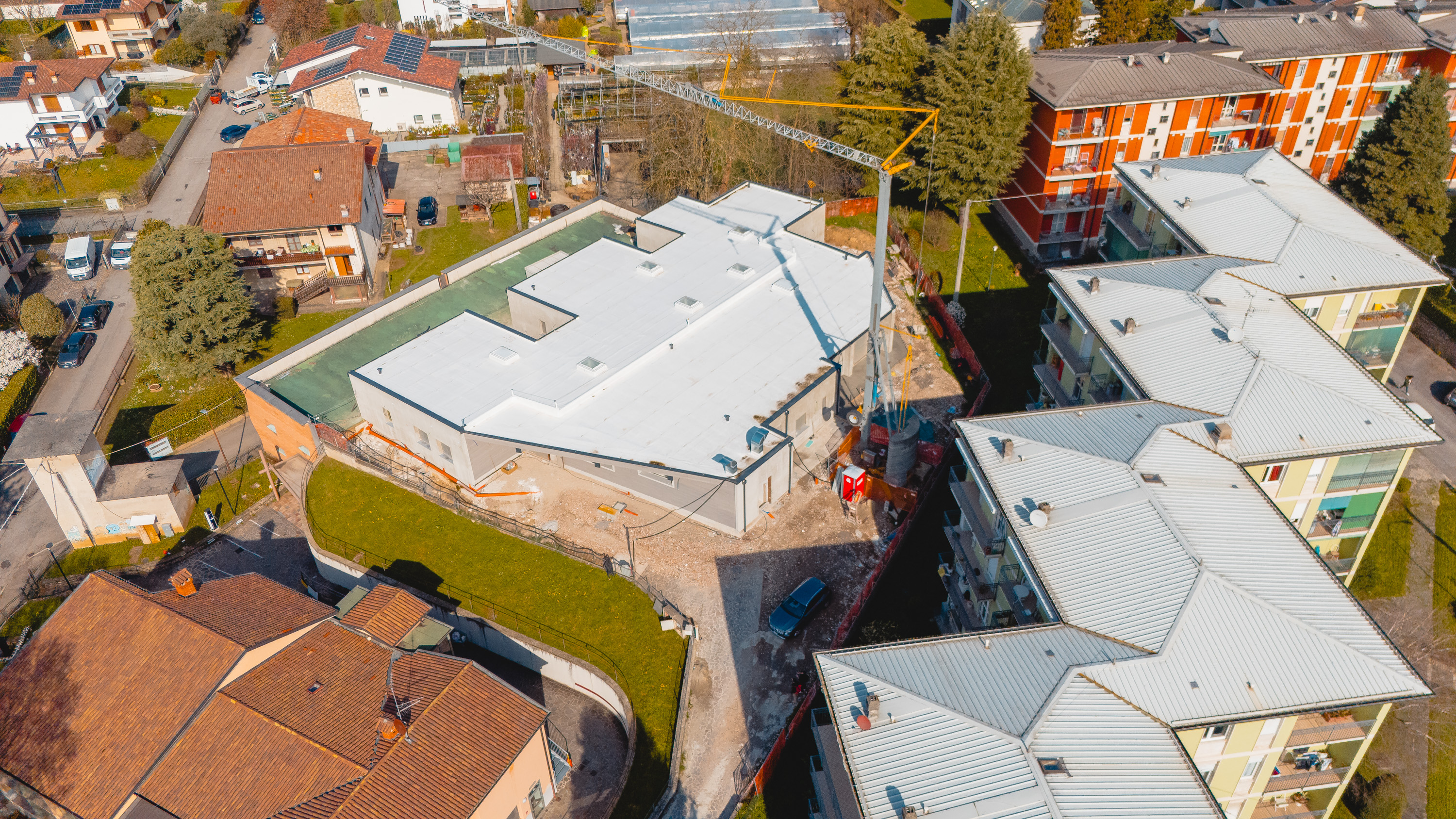 Particolare attenzione è stata posta al tema dell’efficientamento energetico, minimizzato i consumi d’dapprima con l’utilizzo di una tecnologia costruttiva a secco con materiali lignei, e supportato anche da un impianto fotovoltaico in copertura per abbattere i consumi complessivi.